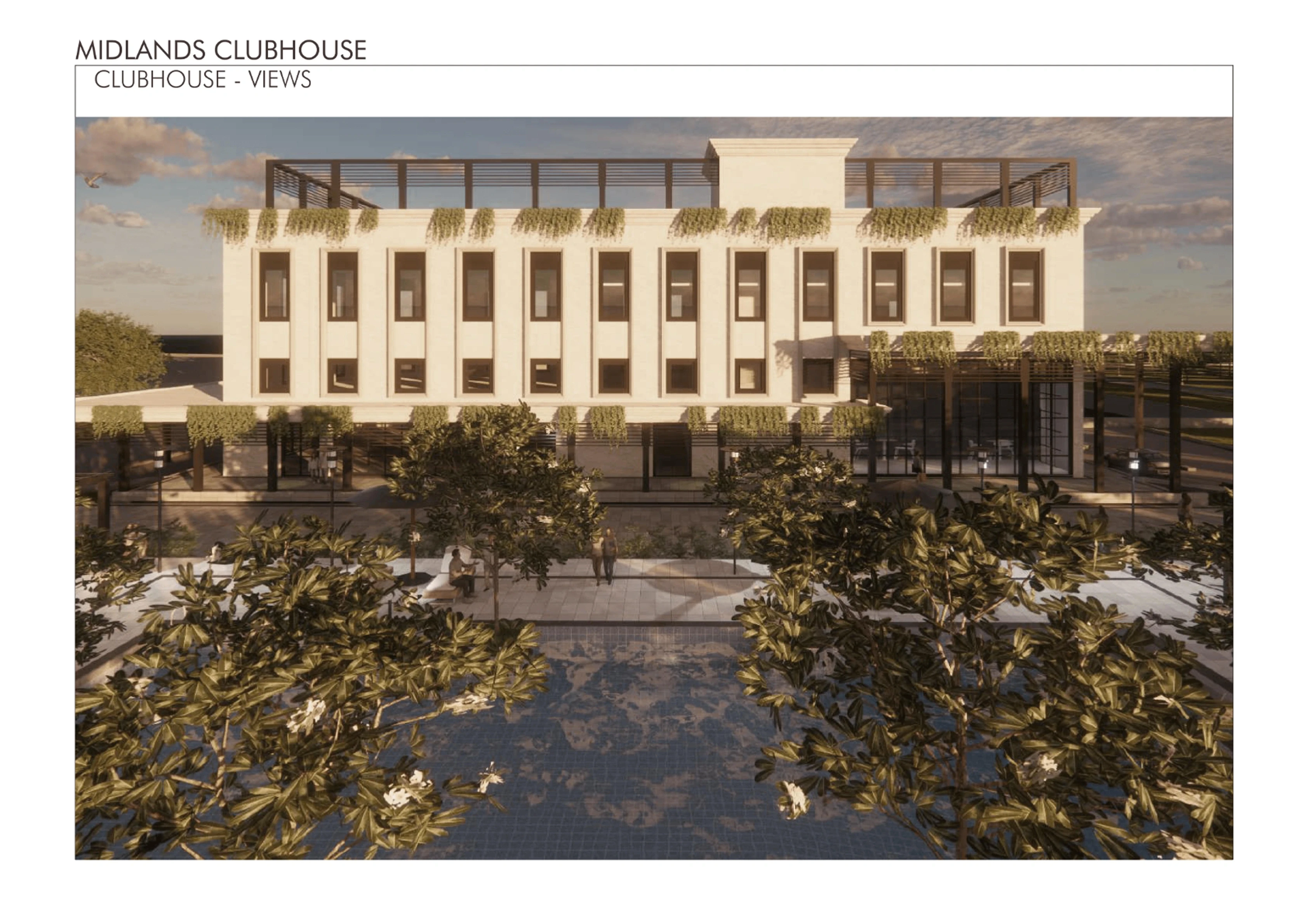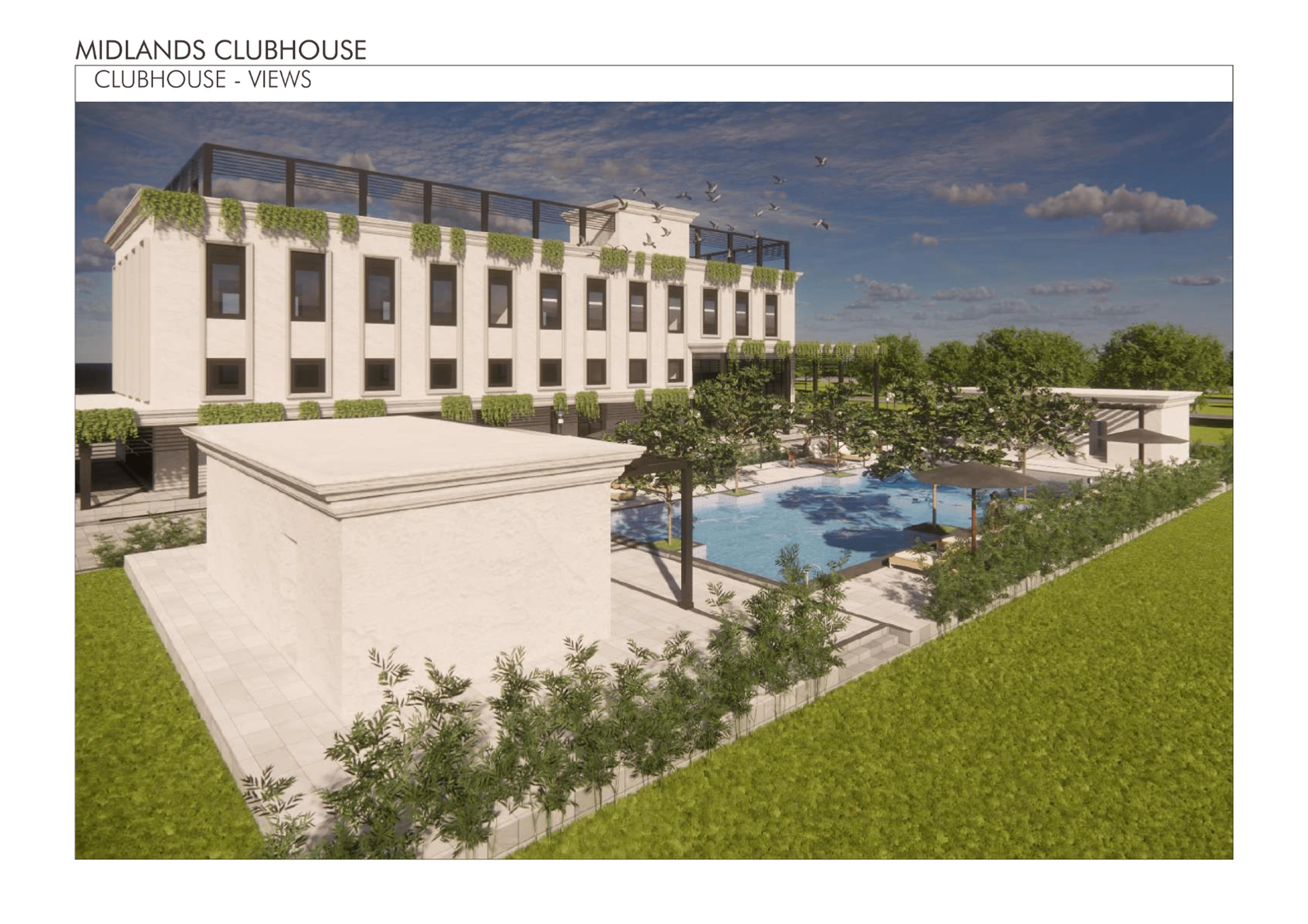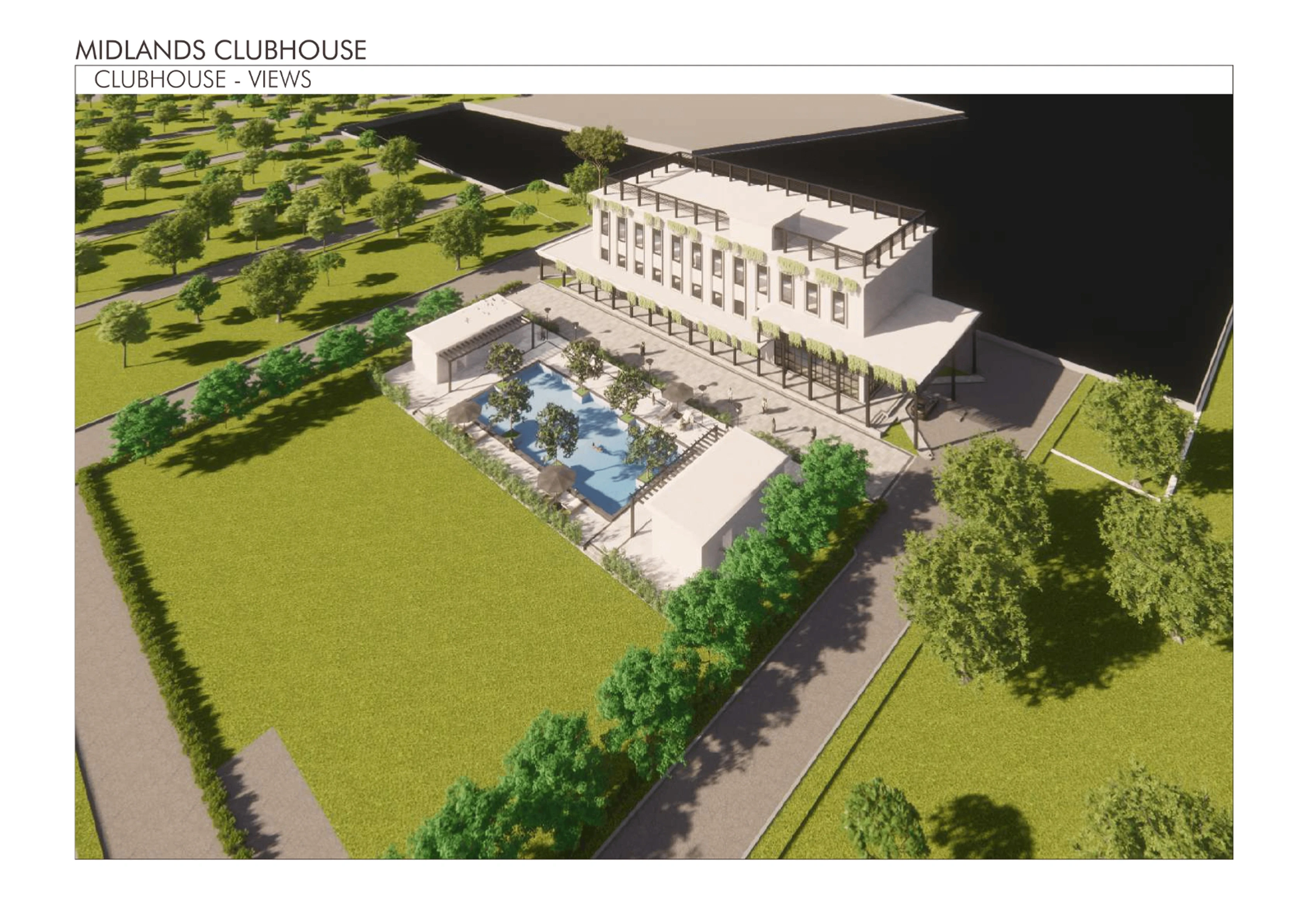 The Midlands Clubhouse is envisioned as a central, elegant hub for community life, prioritizing seamless flow between its diverse recreation, wellness, and social functions. The design balances a modern, clean aesthetic with biophilic integration, utilizing extensive glazing to maximize natural light and connect interior spaces with the surrounding landscape and pool area. The architectural approach emphasizes durability, low maintenance, and a flexible program that adapts to multi-generational needs, creating a vibrant, enduring social heart for the development.