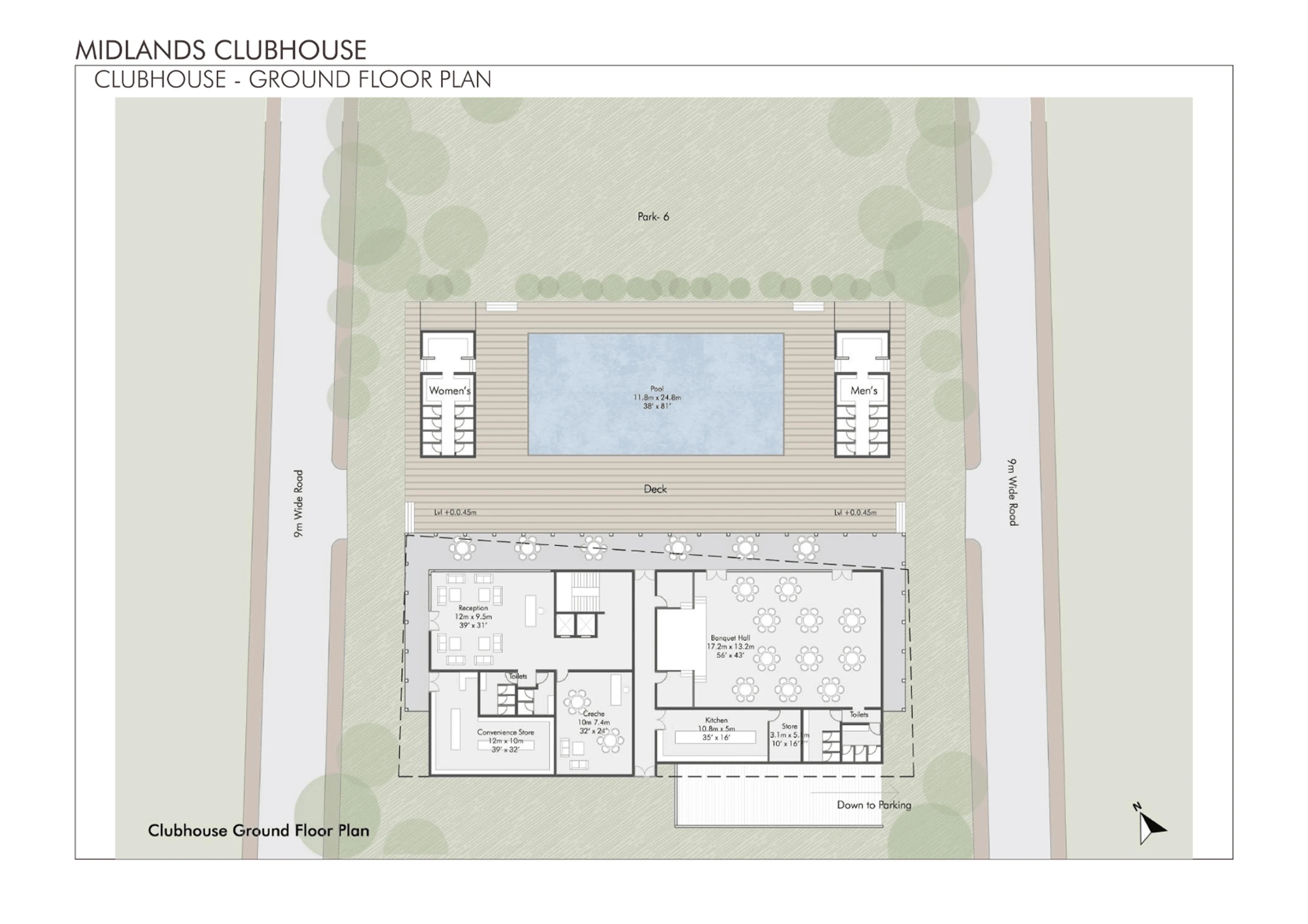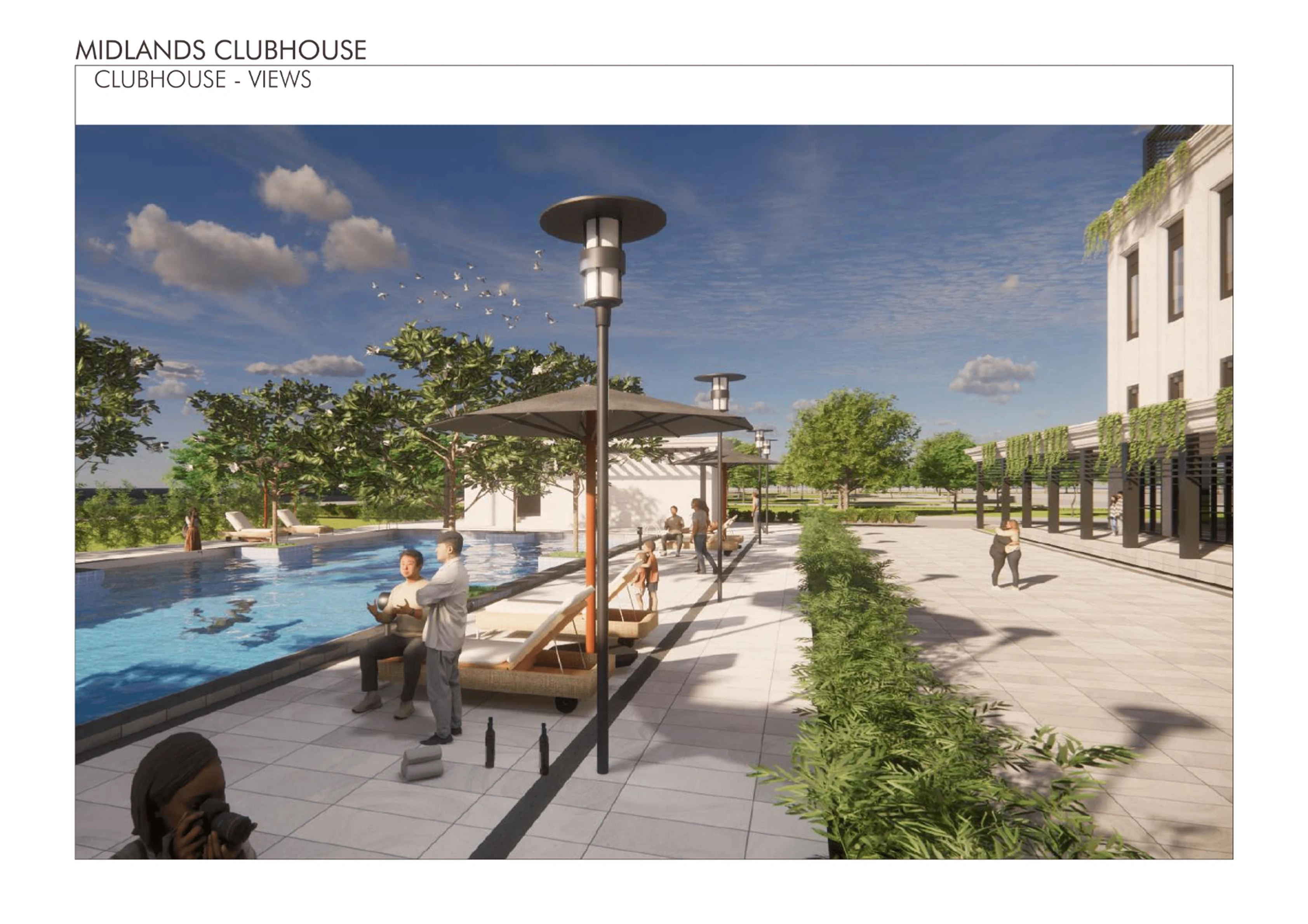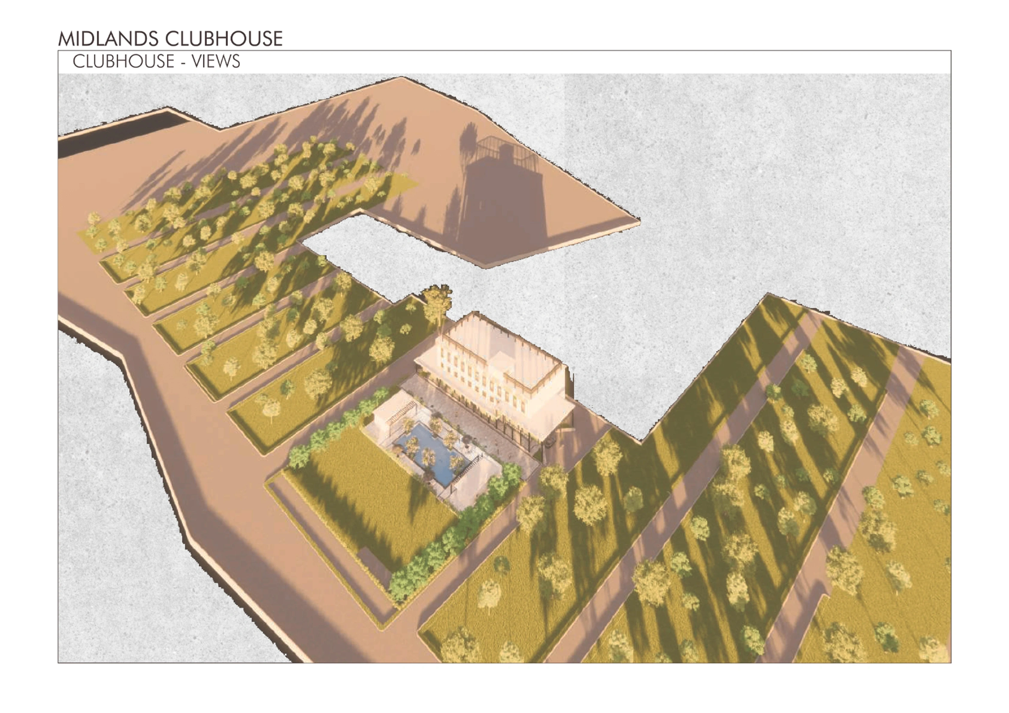 The Midlands Clubhouse is envisioned as a central, elegant hub for community life, prioritizing seamless flow between its diverse recreation, wellness, and social functions. The design balances a modern, clean aesthetic with biophilic integration, utilizing extensive glazing to maximize natural light and connect interior spaces with the surrounding landscape and pool area. The architectural approach emphasizes durability, low maintenance, and a flexible program that adapts to multi-generational needs, creating a vibrant, enduring social heart for the development.