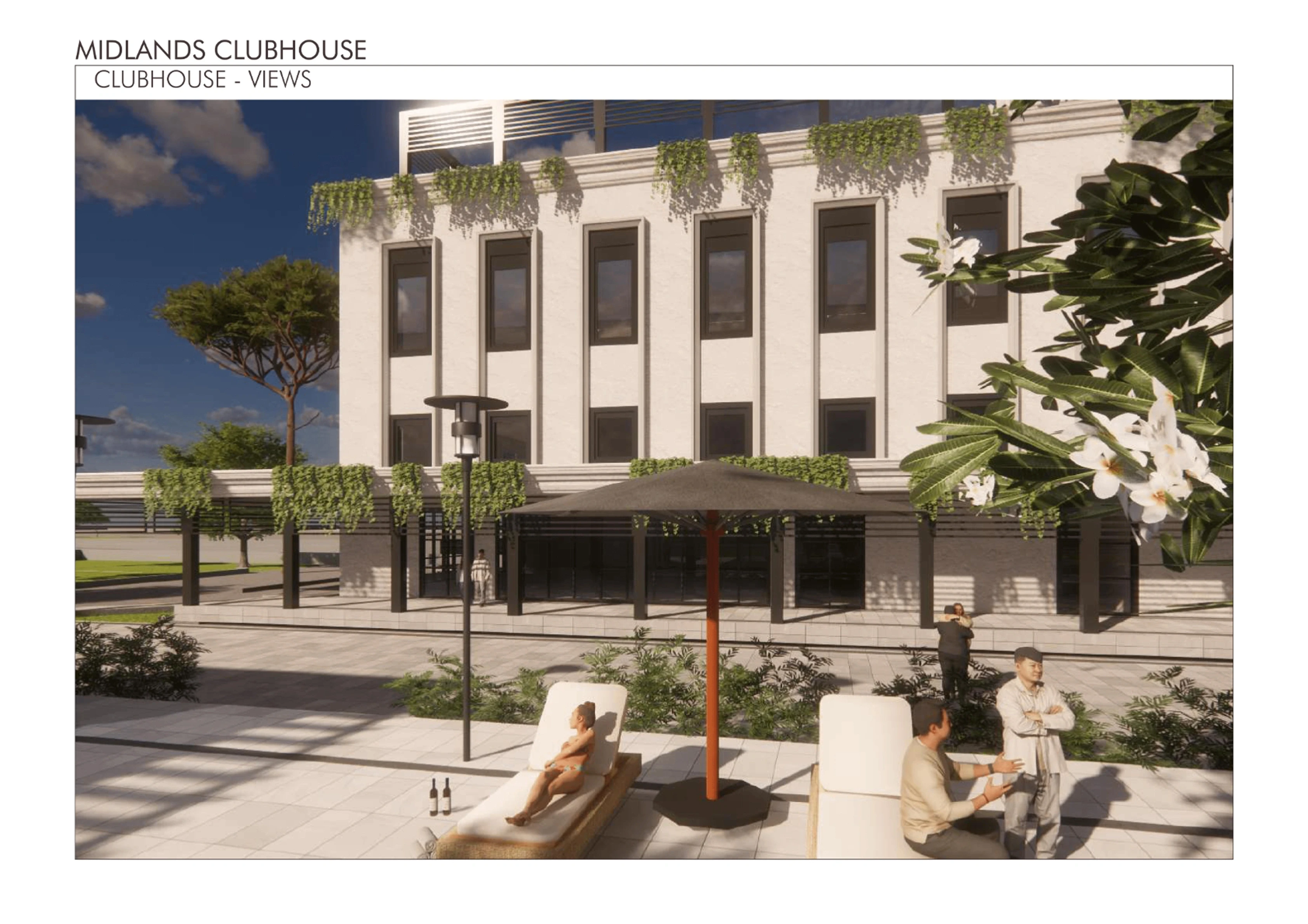 Aesthetics: The building's visual identity uses a consistent palette of white rendered facades, dark metal screen elements, and integrated planters to create a sophisticated, resort-like atmosphere.